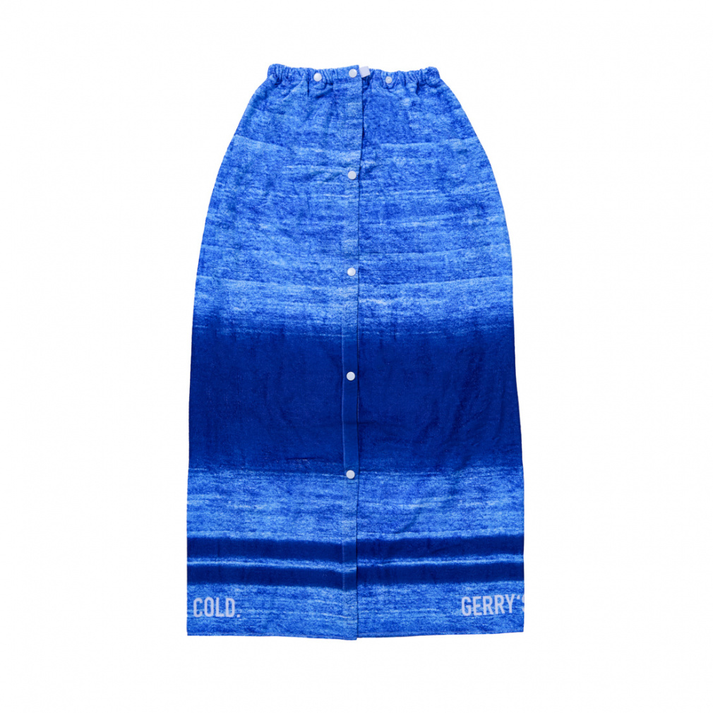 ◇シャーリング素材(綿100%)で水分吸収に優れている。GERRYの100cmラップタオル。人気のデニム調グラデーションロゴ柄がとてもクールでカッコイイ。