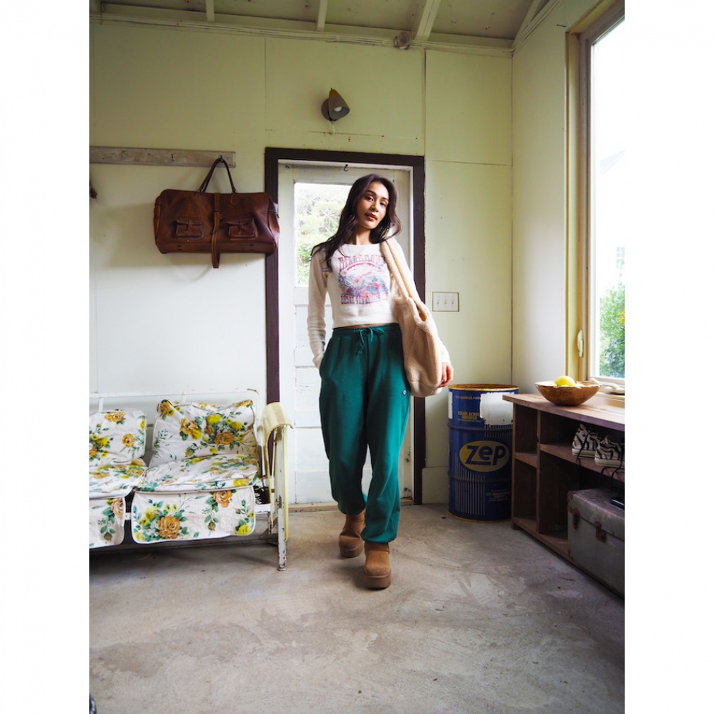 ◇内側がワッフル組織になったストレッチ入り針抜きリブ。フロントにはそれぞれ柄違いのグラフィックプリント。程よく体にフィットするベビーフィット。バックの右裾には小さなクランプラベル。