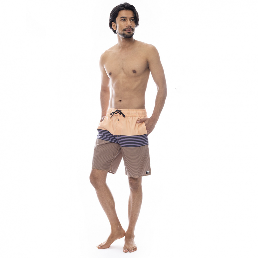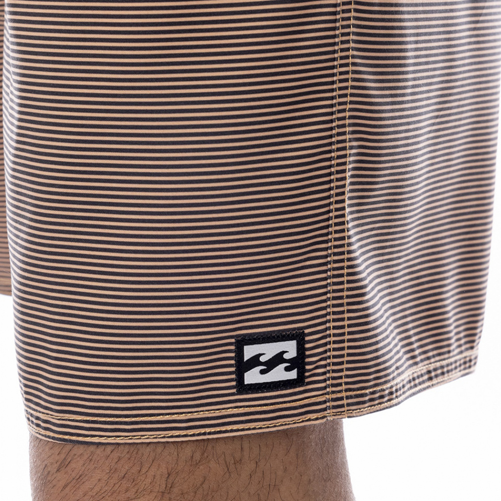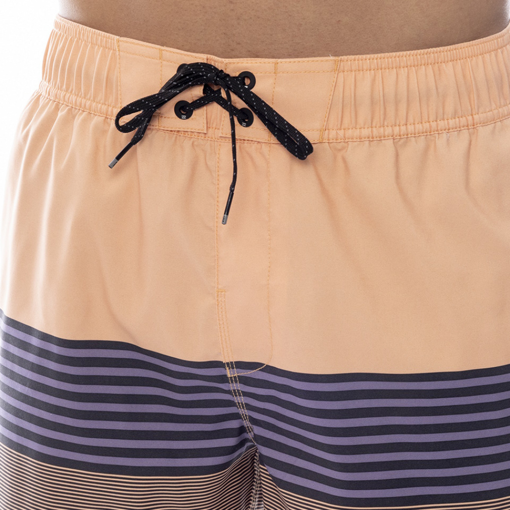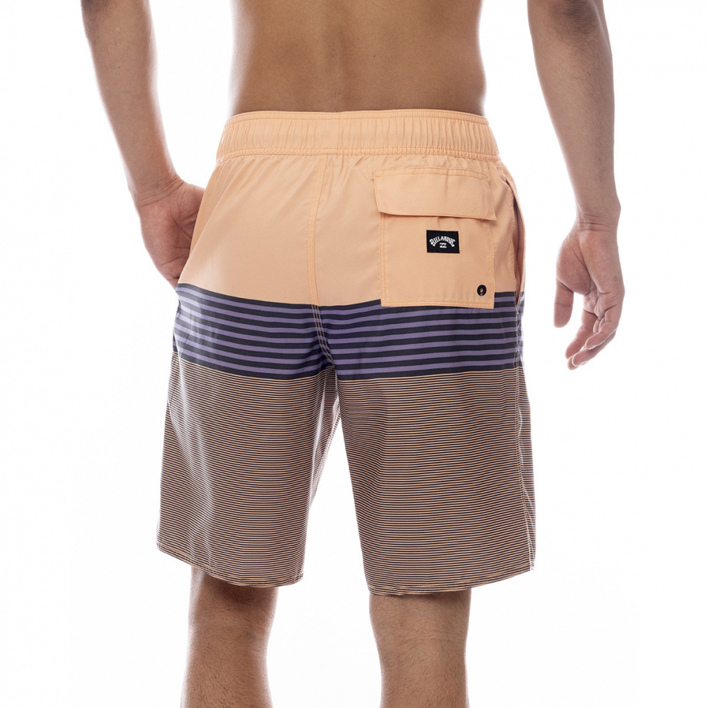 ◇3パネルにストライプをあしらったALLDAY STRIPEのサーフトランクス。しなやかで耐久性のあるリサイクル素材のサーフスエードを使用し、滑らかな肌触りに。ウエストは伸縮性のあるゴム&ドローコード仕様。インナーメッシュ仕様でサイドポケット、キーループ付きフラップポケットを搭載。レングス20インチ。