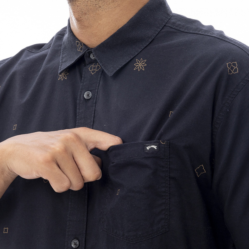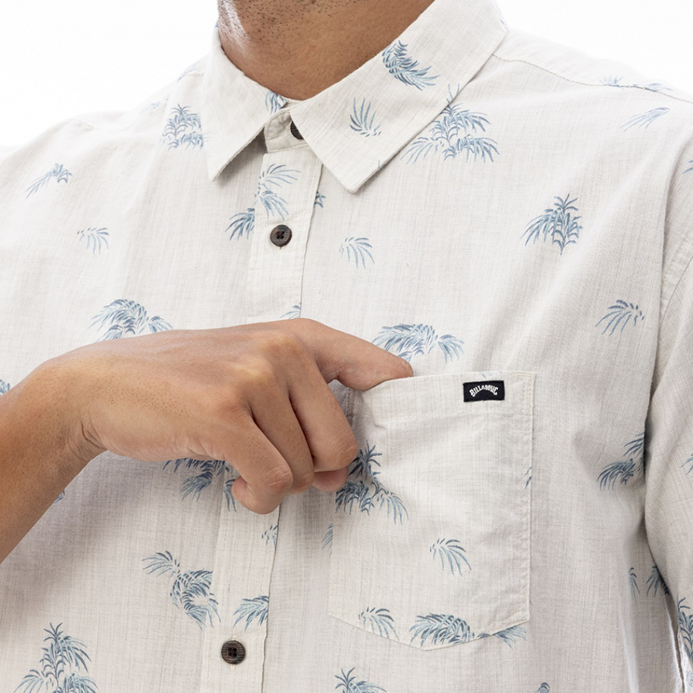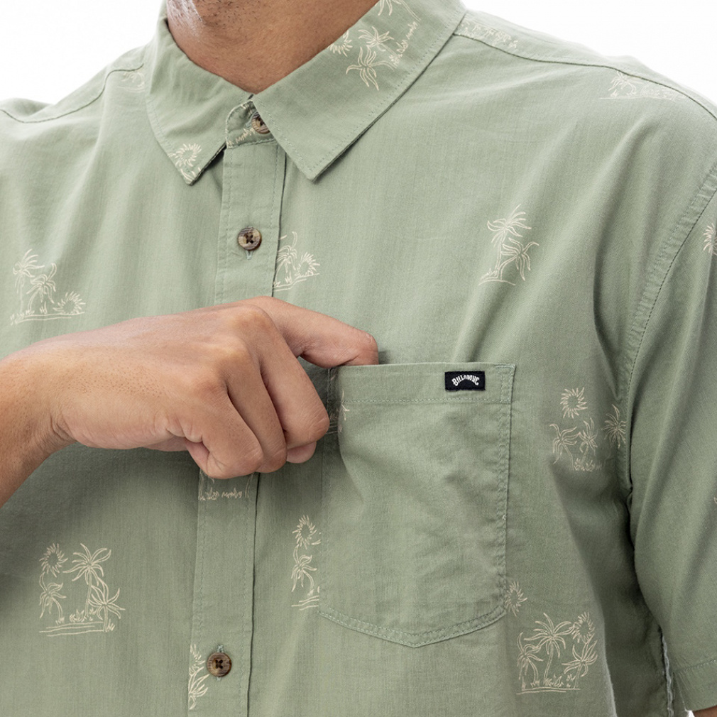 ◇コットンリヨセル生地の総柄プリント半袖シャツ。柔らかなストレッチ素材で、春夏シーズンに快適に着ていただけます。左胸ポケットにネームタグをあしらいました。程よい落ち感があり、普段使いはもちろんリゾート地でも着回せるアイテムです。