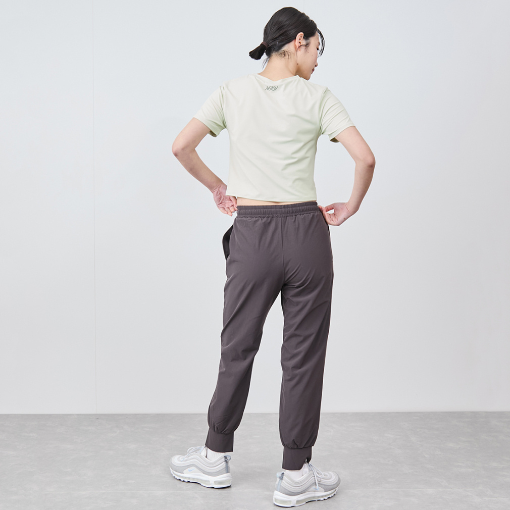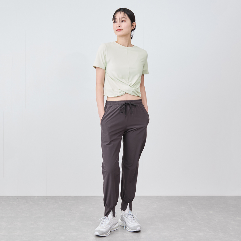 クロップド丈がウエスト位置を高く見せ、脚長効果を演出します。