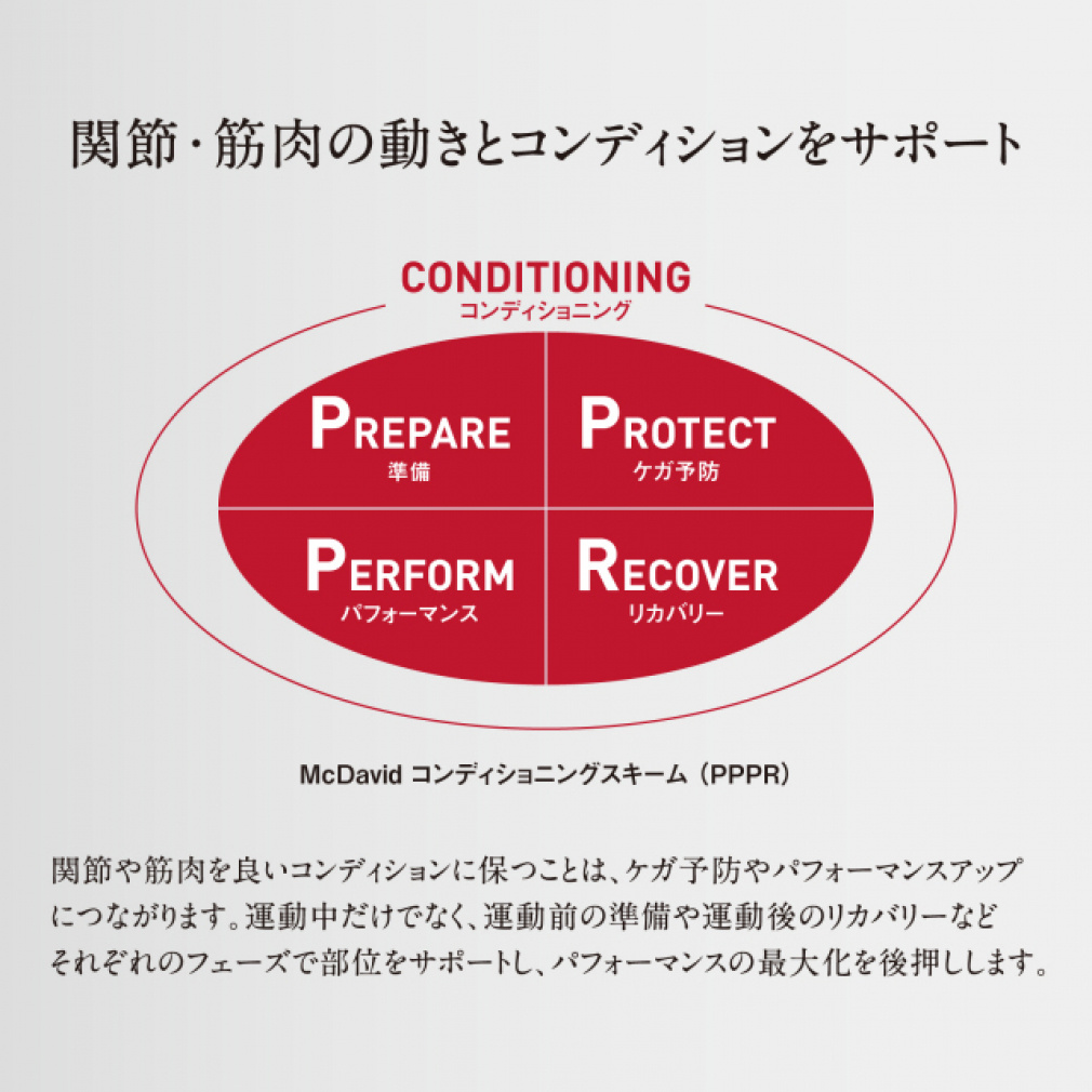 ◇コンプレッションサポート部位全体を包み込むように適圧でサポート運動時の筋肉のブレ(筋振動)を抑制し、ムダなエネルギー消費を軽減さらに動きの安定化、ケガの予防など、より良いコンディションの維持をサポート