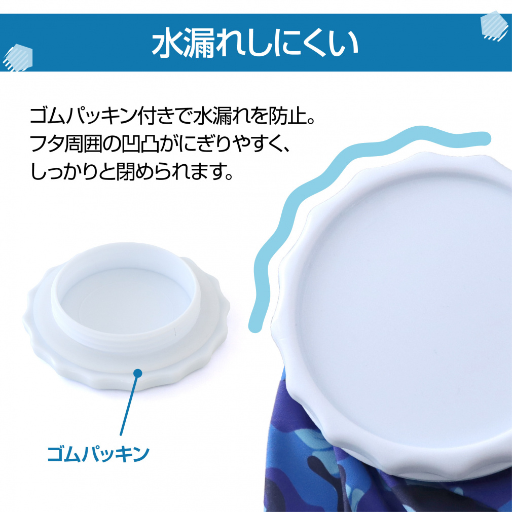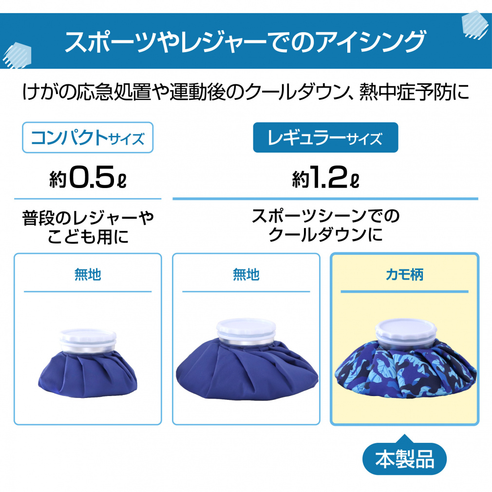 ◇氷嚢袋の直径は22cmと一般的サイズで、スポーツのアイシングや、レジャーの熱中症対策としても最適◇氷嚢の内側はTPUコート加工で、水漏れに強い素材となっています。