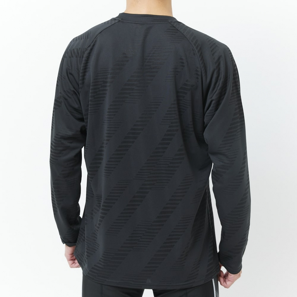 ◇寒い時期の屋外トレーニングにおすすめの防風仕様「WIND-CUT」を採用したアイテム。身頃・袖部分の軽さ・着心地感をそのままに、フロント部分に軽量ブレーカー素材を重ね、前からの衣服内への冷風の侵入を軽減します。袖と後身頃は動きやすさを重視したメカニカルジャカードを採用。高密度の完全防風素材とは異なり、汗をかいた時のムレ感を軽減し風合い・着心地も追求。スピード感のあるグラフィックデザインで、秋冬の部活動や練習でのモチベーションをアップします。