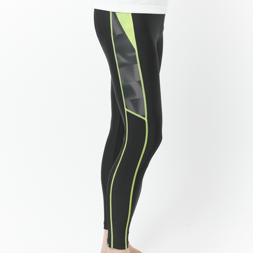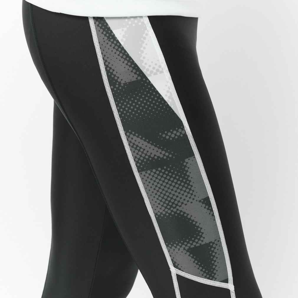 ◇陸上競技アスリートの練習におすすめの定番タイツ。吸汗速乾性の高い2WAYストレッチ素材を採用し、パフォーマンスをサポート。トップスに合わせやすいブラックをベースに、右サイドに昇華転写プリントによるグラフィック、左側にステッチを施したアシンメトリーデザイン。シューズを履いたまま脱ぎ着しやすい裾ファスナー付き。