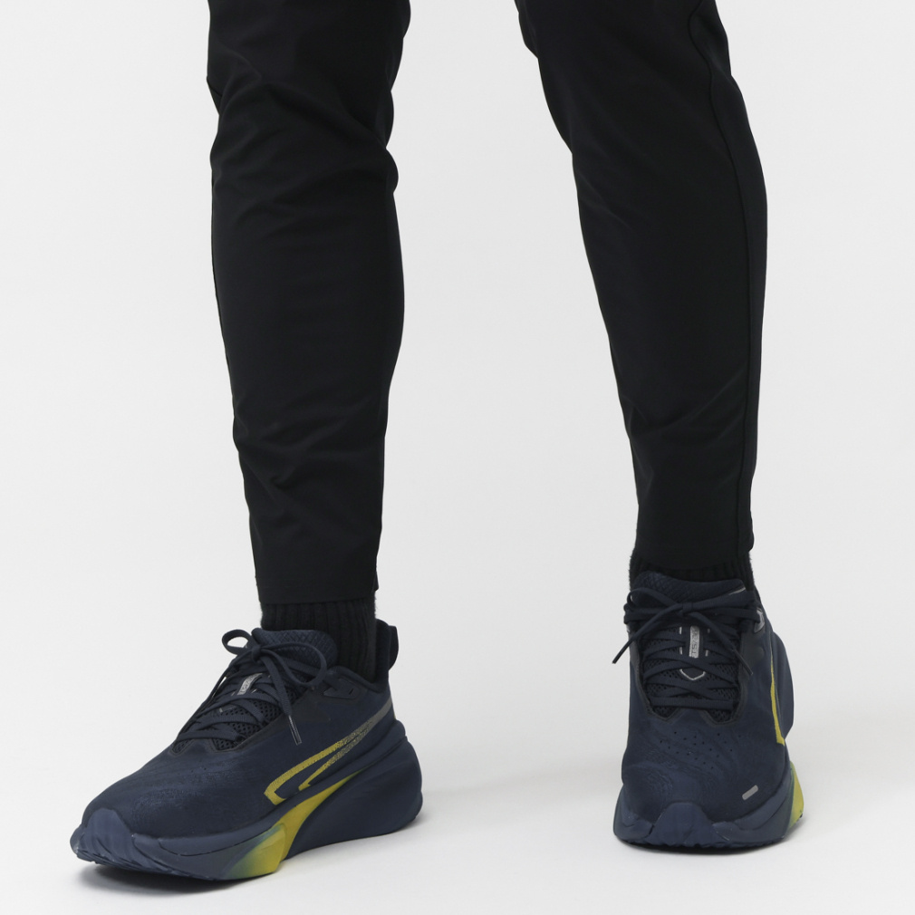 ◇ランニングに適した程よいハリ感があるストレッチ素材と、後ろひざ下の切り替えジャージ素材のハイブリッド仕様。