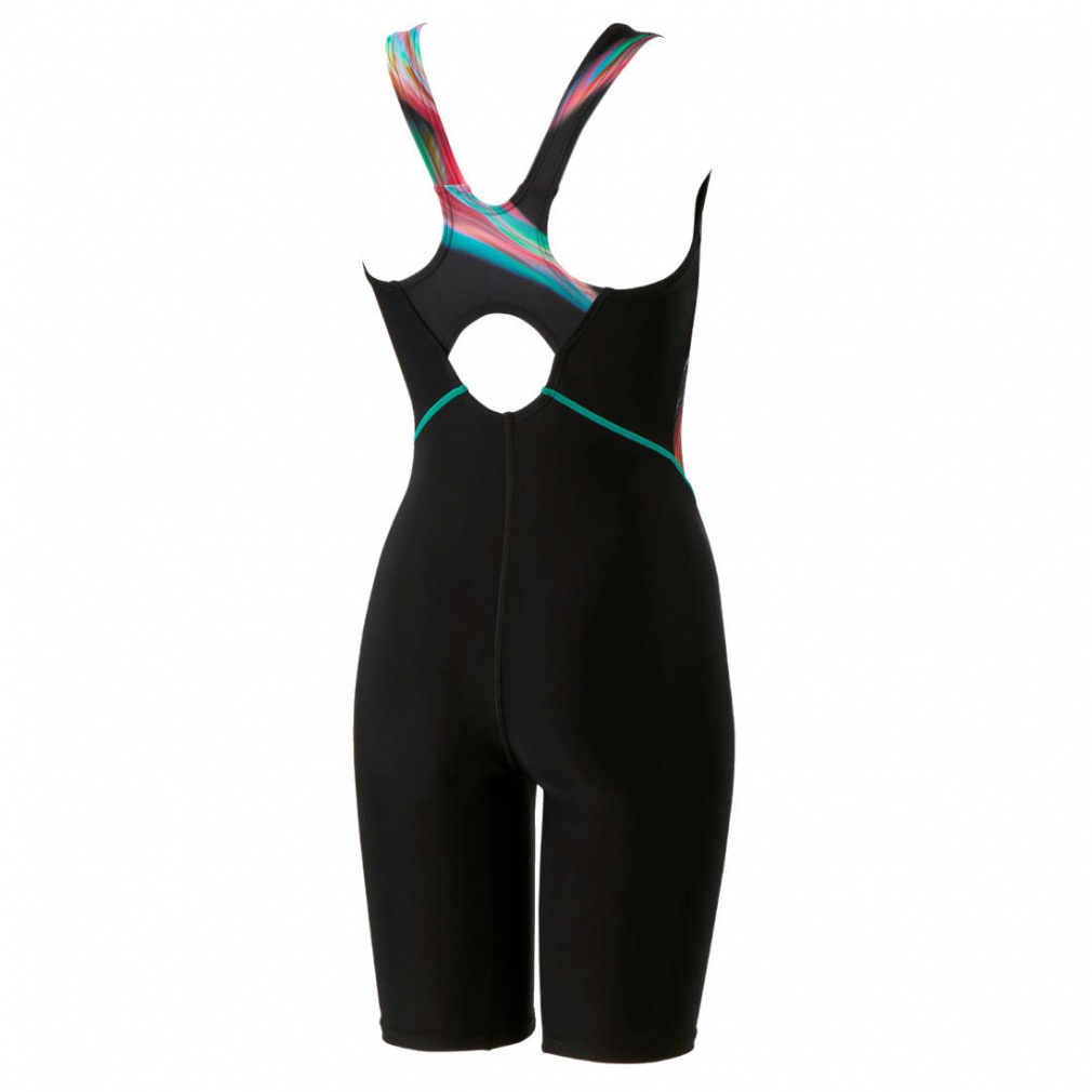 ◇ゆったりしたフィット感で自分のペースで泳ぎたい方向けの「Loosen(ルースン)」シリーズ。ゴールドウインが独自開発した環境配慮型素材「Ultra Stretch ECO(ウルトラ・ストレッチ・エコ)」採用のレディースニースキンです。高いはっ水性がサラッとした軽量感をキープし、スムーズな泳ぎを手助けします。縦横4方向に伸びる優れたストレッチ性が、着用後の水着のズレを軽減。安心感のある厚みがボディラインをほどよくカバーします。露出を抑えた小さな背穴。食い込みを防ぐために幅広の肩ストラップを採用しています。着脱時のもたつきが少なくズレにくく動きやすい、縫い込み式のカップ付き。クロッチ部分には肌あたりのよい柔らかな素材を使用しています。膝上までの4分丈です。ゆったりとしたフィット感で、着脱時もトレーニング時も快適性が持続します。Obsidian=黒曜石の輝きをグラフィカルに表現。Speedoらしい躍動感に満ちたエネルギッシュなデザインです。