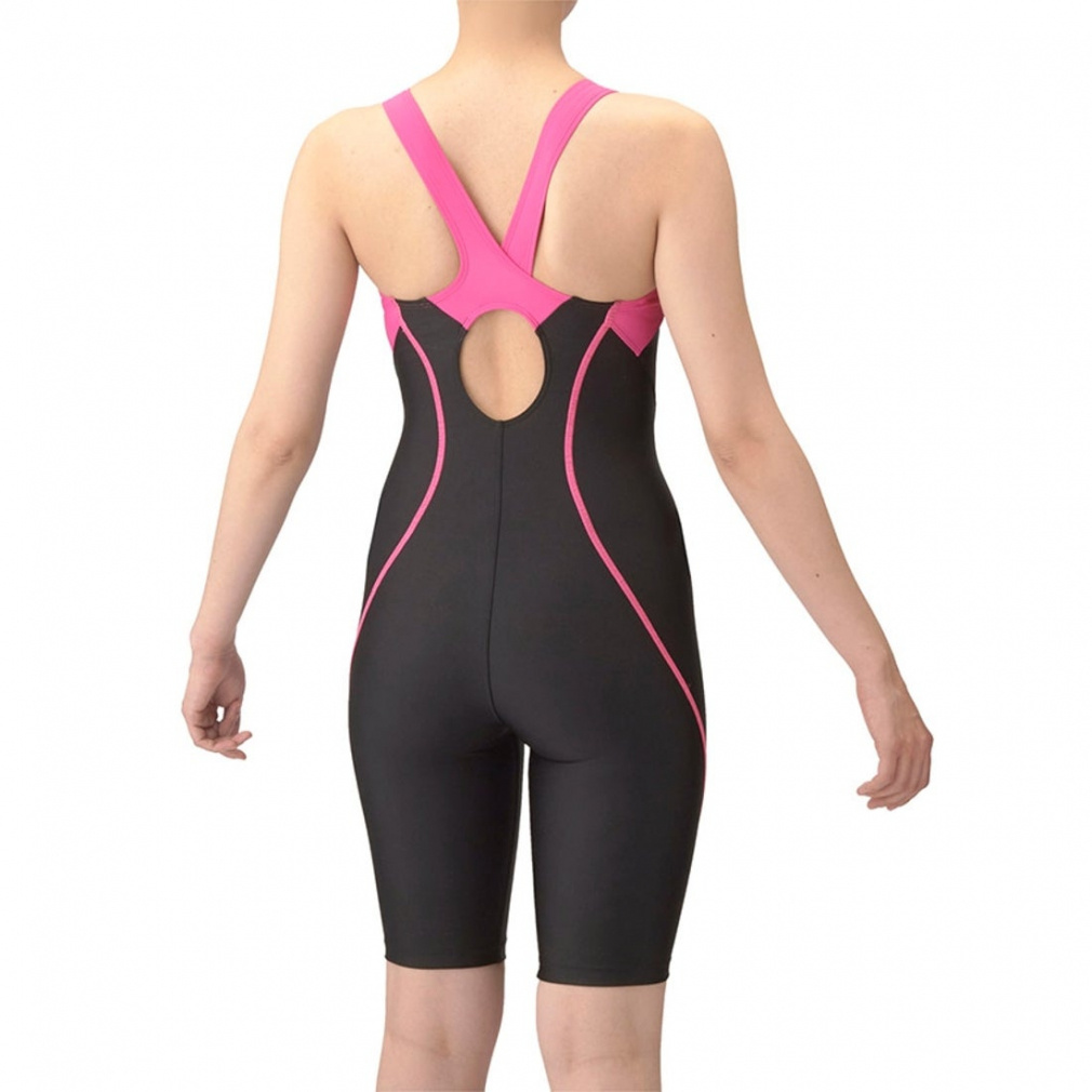 ◇上達を目指すフィットネススイマーにおすすめ。あきの少ないオープンバックタイプで、背中の露出を抑えつつ、水が抜けるため泳ぎやすい。膝上まで生地があるハーフレッグ丈で、脚の露出を抑えるため、安心感を求める方におすすめ。大きく開いて着脱がしやすい「着やストラップ」搭載。はっ水生地を使用しており、シャープな水きれで軽い泳ぎ心地が特徴。パッドは「ひっかけパッド」を使用しており、取り外しが可能なため、パッドの買い替えも可能。また、バスト位置に合わせて調整ができるアジャスター付き。胸元のアリーナロゴと体のラインをすっきり見せてくれるシンプルなステッチデザインが特徴で、一枚あると便利なベーシックデザイン。※効果や使用感には個人差があります。また、肩紐部分、切り替え部分ははっ水が施されていない場合があります。