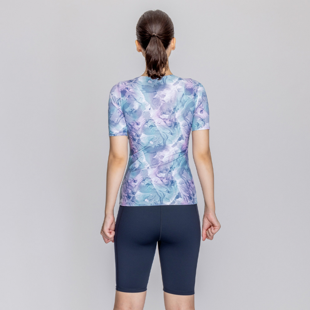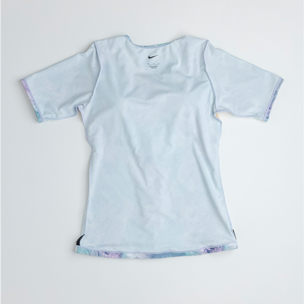 ◇柔らかな色合いの華やかなプリントが顔まわりを明るく見せてくれるNikeの総柄水着