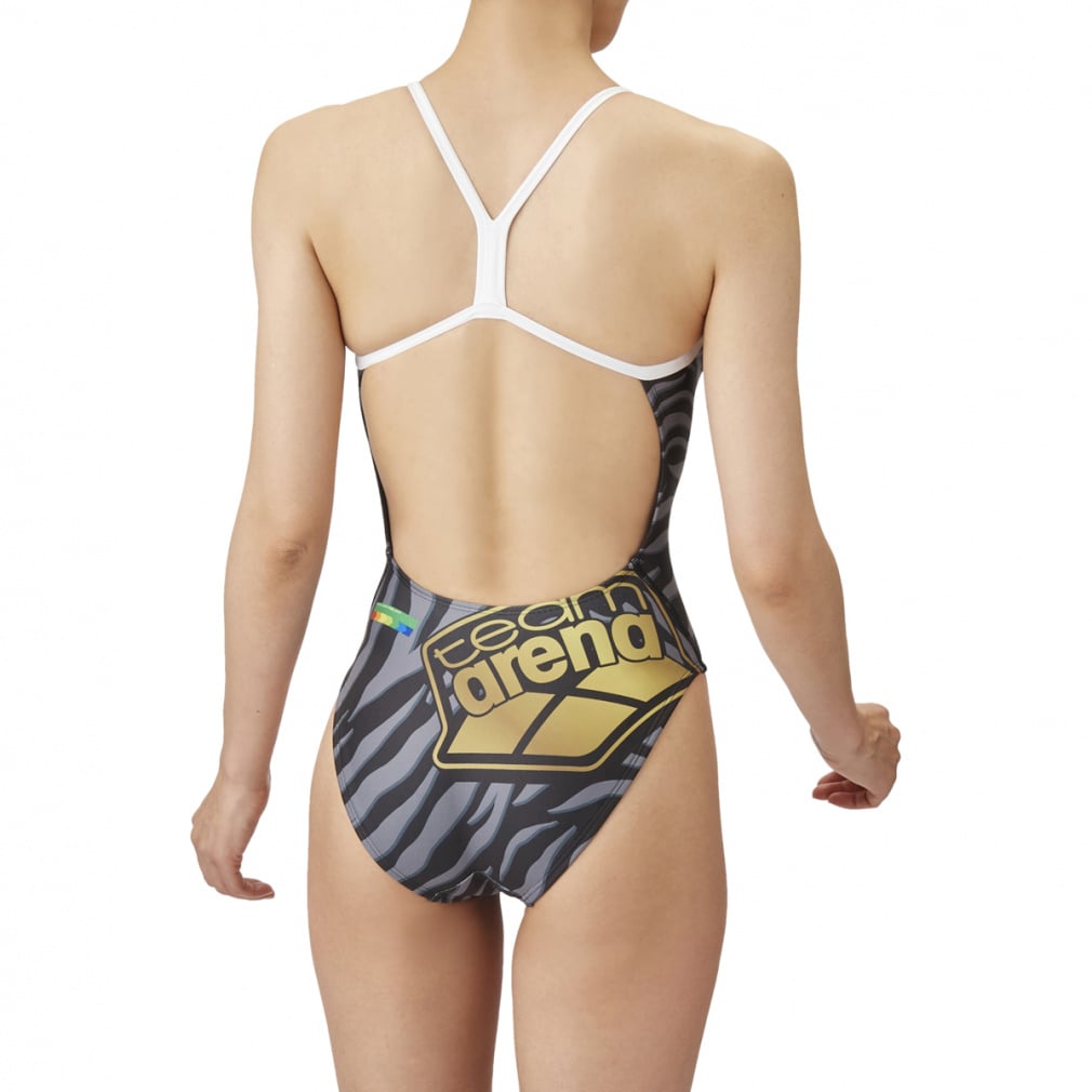 ◇トレーニングカテゴリー「TOUGHSUITシリーズ」。大会に向けて練習を重ねる頻度が高いスイマーにオススメの練習用水着。環境に配慮したリサイクルポリエステル素材「タフスキンT2E」を使用し塩素に強く長持ち。アドバイザリー契約を締結した選手たちと共にデザインを作成した「チームアリーナコレクション」。多彩な色使いと、チームアリーナロゴを大きく配置する事により、視覚的なインパクトを与えるカッコいいスタイル。成田実生選手、平井瑞希選手、谷川亜華葉選手、池本凪沙選手、難波実夢選手着用。前後に黒の裏地付きワンピースタイプ水着。