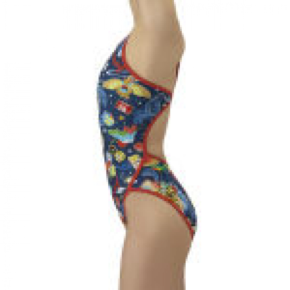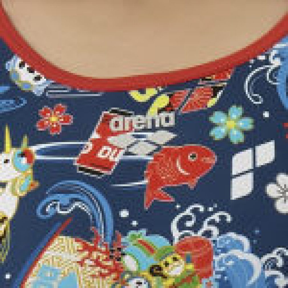 ◇トレーニングカテゴリー「TOUGHSUITシリーズ」。大会に向けて練習を重ねる頻度が高いスイマーにオススメの練習用水着。環境に配慮したリサイクルポリエステル素材「タフスキンEP」を使用し塩素に強く長持ち。全てのスイマーに人気のアリーナくんの総柄ワンピースタイプ。日本の縁起の良い和柄と海と親和性のある宝船がポイント。宝船が象徴する繁栄や幸運が着用するスイマーたちへ届くよう願いを込めたデザイン。アリーナくんと仲間たちが七福神になっている遊び心を表現。前身頃、後身頃共に黒の裏地付き。*この商品は縫製上、一点一点プリント柄の見え方に違いが生じますので予めご了承ください。