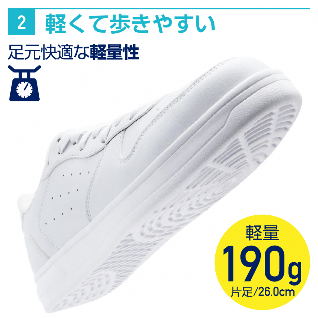 ◇どんなスタイルにも合わせやすい定番デザインのスニーカー。片足190g(26.0cm)という驚きの軽さ!しかも急な雨にも安心の生活防水仕様!普段履きの他に通学などにもオススメです。