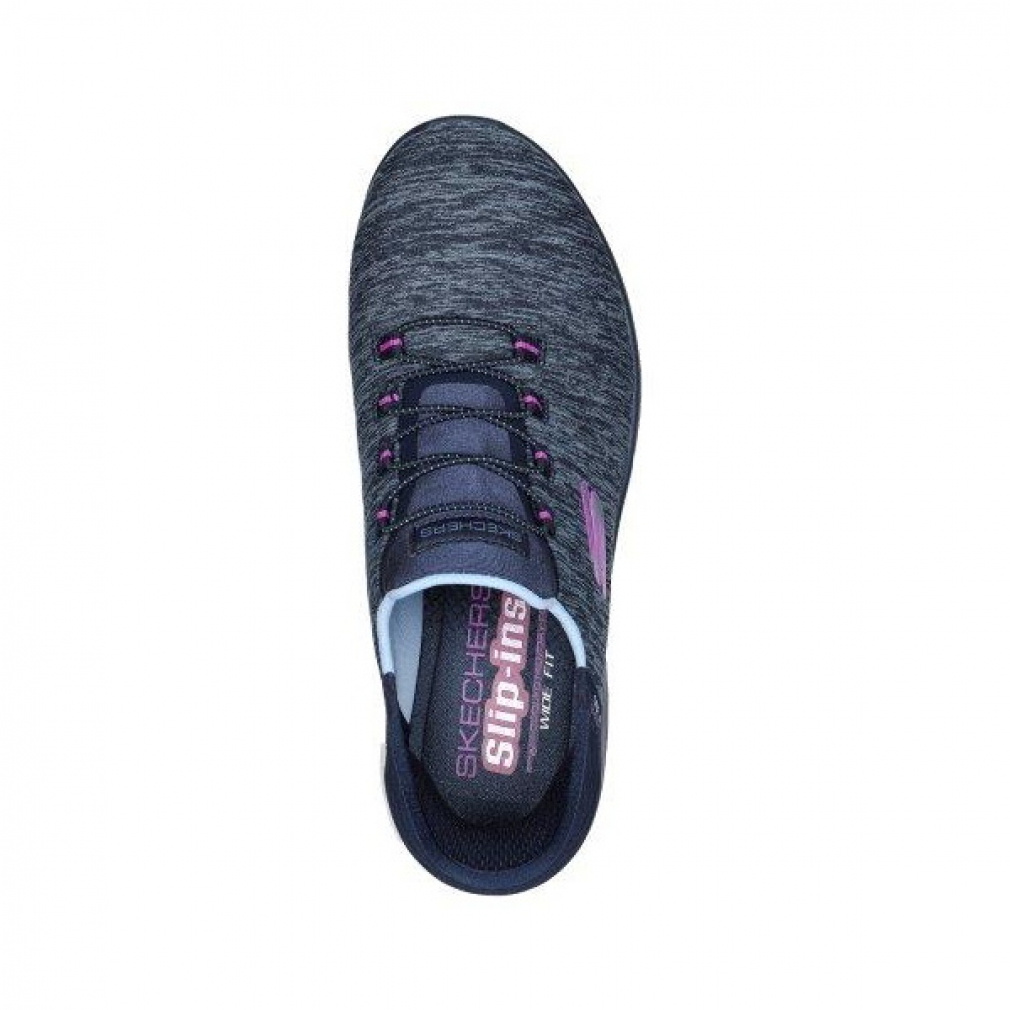 ◇履きやすさと快適な履き心地でペースを上げる、Skechers Slip-ins: Summits - Dazzling Haze スケッチャーズ スリップインズ:サミッツ - ダズリング ヘイズ。独自のヒールピローを搭載したヴィーガンスタイルの一足です。ソフトなヘザージャージーニットのアッパーと固定ストレッチレースを配し、クッション性のあるSkechers Air-Cooled Memory Foam(スケッチャーズ エアクールドメモリーフォーム)のコンフォートインソールを組み合わせました。