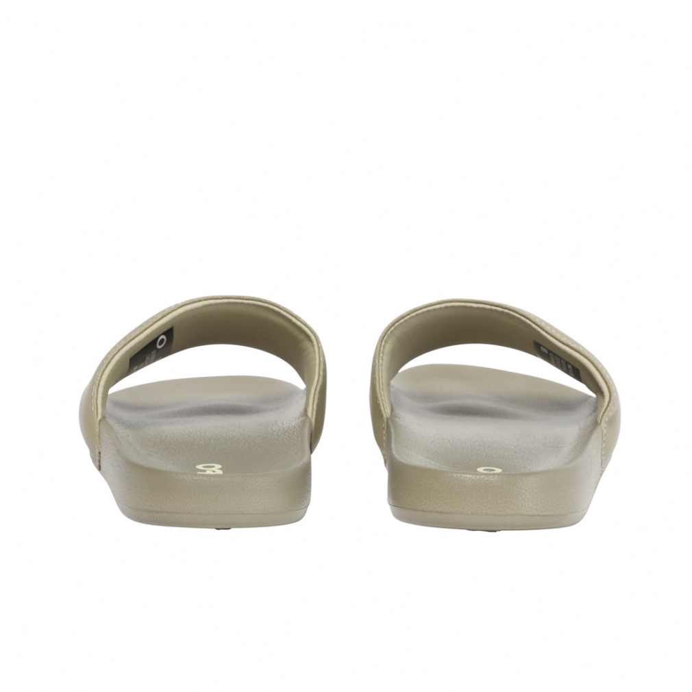 ◇このサンダルは左右それぞれにロゴがデボス加工が施され、軽量で快適なEVAフットベッドを採用しています。