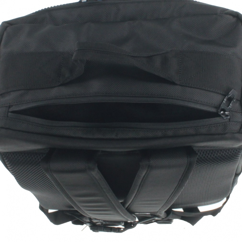 上部の大きい開口から出し入れが容易に行え、また背面のラップトップ収納とメイン収納にはサイドからもアクセスが可能。