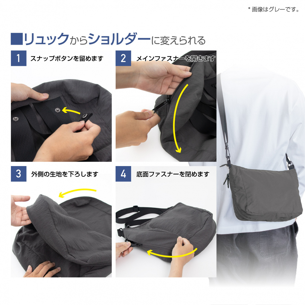 ◇荷物を入れたままでもショルダーバッグからディパックに簡単切替!