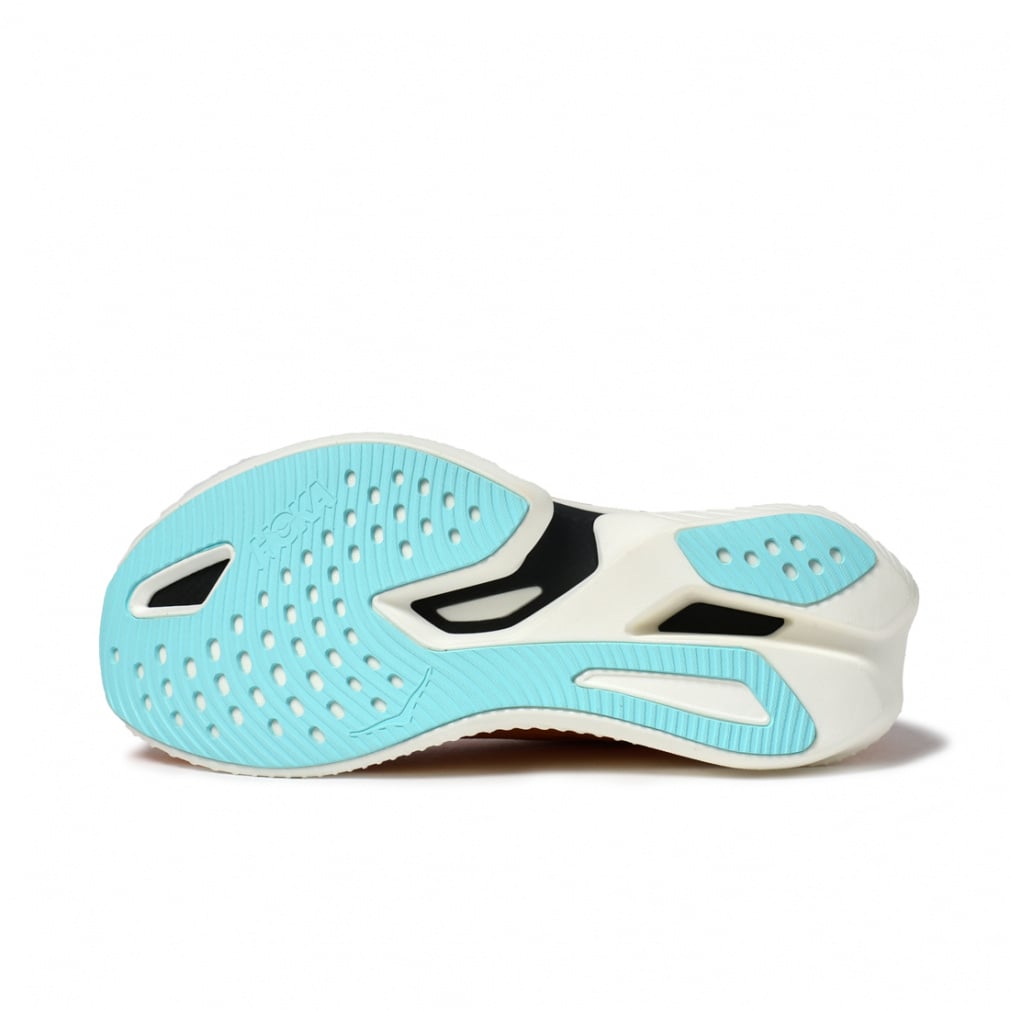 ◇ソール部分に大胆な切り込みを入れ軽量化し、ミッドソールにはウイング状のカーボンファイバープレートを2層のPEBAフォームで挟み込むことで高い推進力を実現。