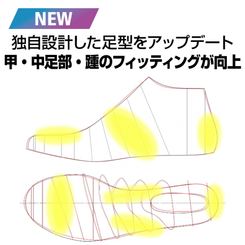 ◇独自設計の足形をアップデート、甲・中足部・踵のフィッティング向上