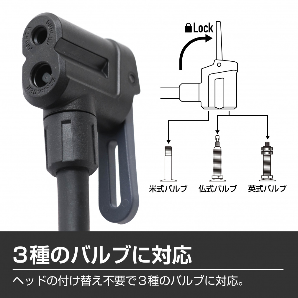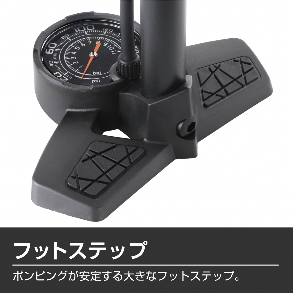 高気圧フロアポンプ/11気圧/大柄空気圧ゲージ/仏・英・米対応バルブ