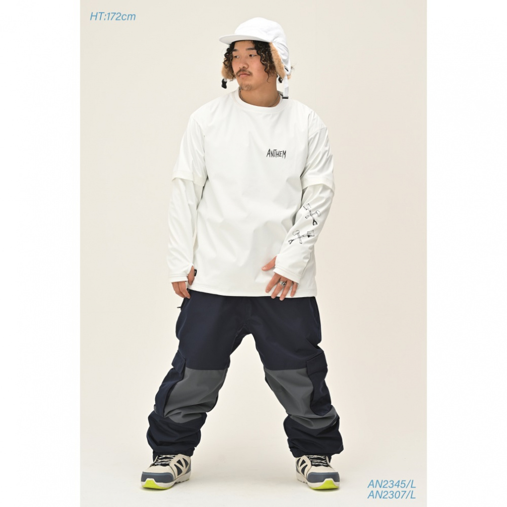 ◇サイドにラージサイズカーゴポケット。ウェストパウダーガード付き。ワイドシルエット。