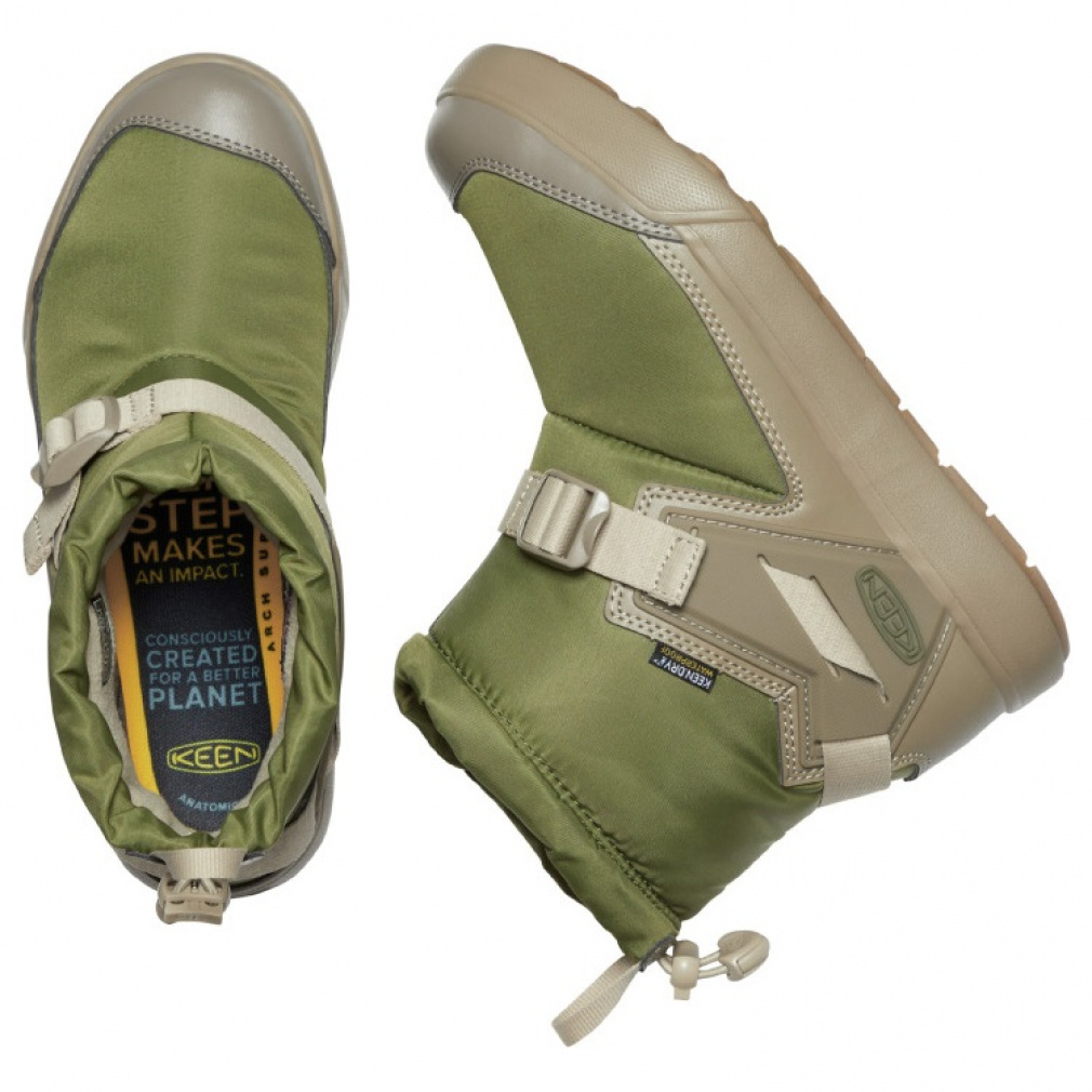 ■底材(ソール):KEENフリーズラバーアウトソール、低温の寒い環境だと硬化し滑りやすくなるラバーの性質を抑え、路面に密着し易い柔軟なラバーの状態にすることで、接地面積が増えグリップ性を維持、踏み跡を残さず、耐摩耗性とグリップ性に優れたノンマーキング仕様