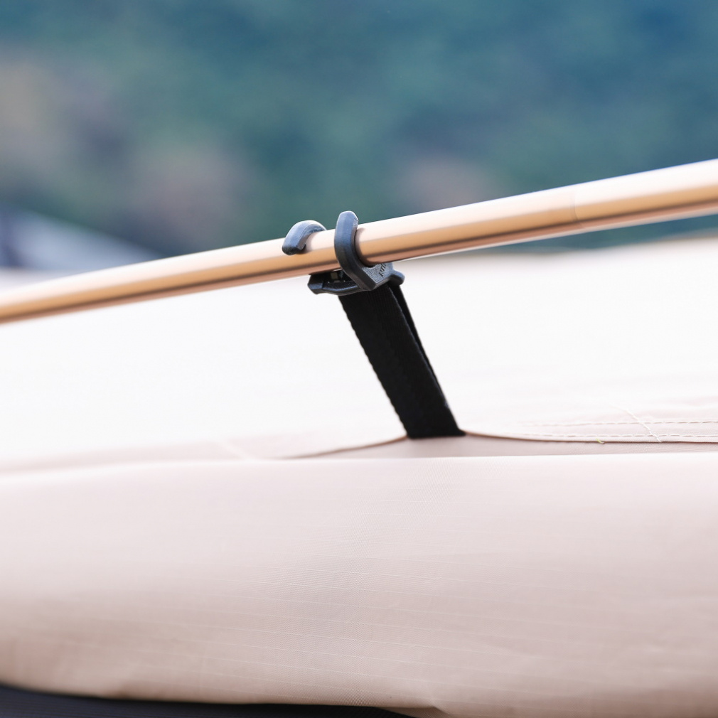 ◇取り付けが簡単なツイストフックは設営時の爪や指に優しい設計。