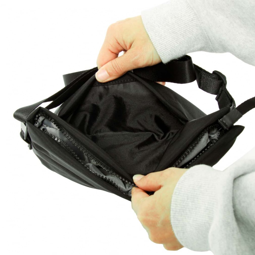 ◇落ち着いたスタイルを演出するマットな質感の小型ショルダー(容量2L)です。素材には、高い強度と軽さを両立した840デニールのジュニアバリスティックナイロンを採用しています。フロントにファスナー付きポケット、背面にスリットポケットを装備。ソリッドながら、男女ともに使いやすいカジュアルな雰囲気のデザインで、フォーマルからカジュアルまで活躍するアイテムです。