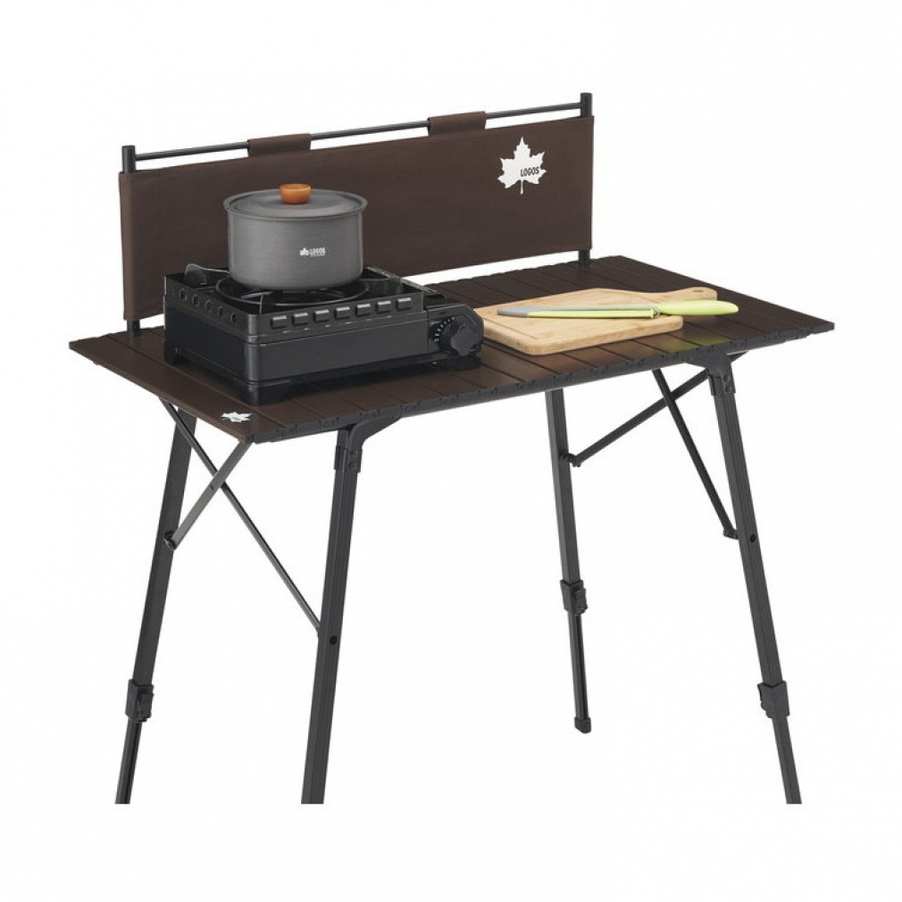◇屋外でも風を気にせずにコンロでの調理ができる風防付きのテーブル。汚れたら食器用洗剤で丸洗いできる。脚部は分解できるので収納はコンパクトに。高さは地面の凹凸に合わせて4脚それぞれ無段階調節できるので、不安定な足場でも快適に食事ができる。