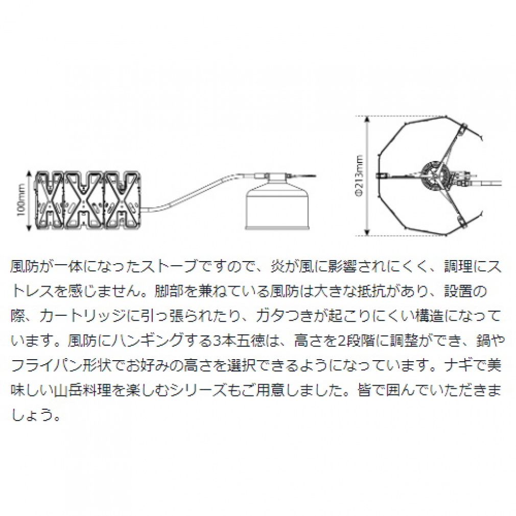 ※使用上の注意を必ずご確認の上ご使用ください。使用上の注意・禁止事項を守らず使用されますと一酸化炭素中毒をはじめ、火傷、火災等の重大事故を引き起こす恐れがあり大変危険です。ご使用中には多量の酸素を消費しますのでテント、車の中、屋内、屋外であっても換気の悪い場所では絶対にご使用にならないでください。