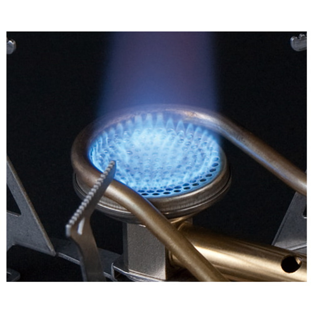 ◇脚部兼ゴトクを開いて固定するロック機構が付いた、非常にコンパクトに収納できるシンプルな分離型ストーブです。バーナーヘッドに沿うように配置したプレヒートパイプは燃焼熱でガスの気化を促進させ、安定した燃焼を実現させます。