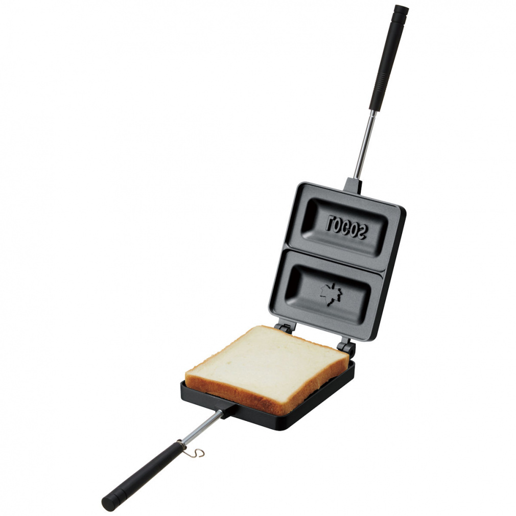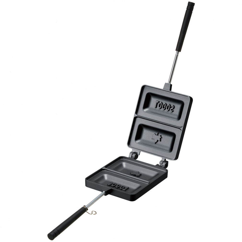 ◇ブラック系の配色を採用したホットサンドパンは、食パンサイズなので実用的。パンに好きな具材を挟んで火にかけるだけでホットサンドが完成します。ミミあり、ミミなしどちらのパンでも調理可能。ハンドルは着脱できるので持ち運びがしやすく、収納もコンパクト。