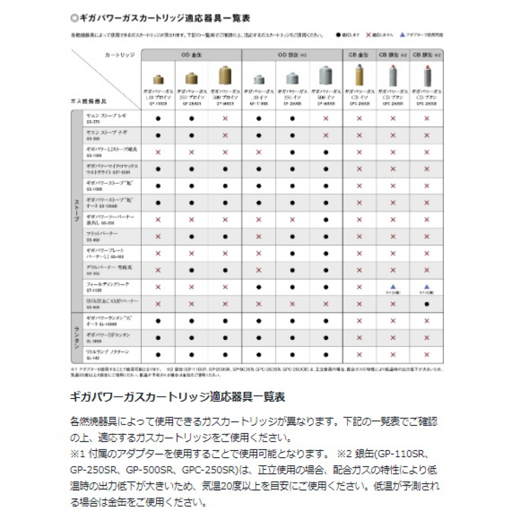 ・メーカー指定のガスカートリッジをご使用ください。