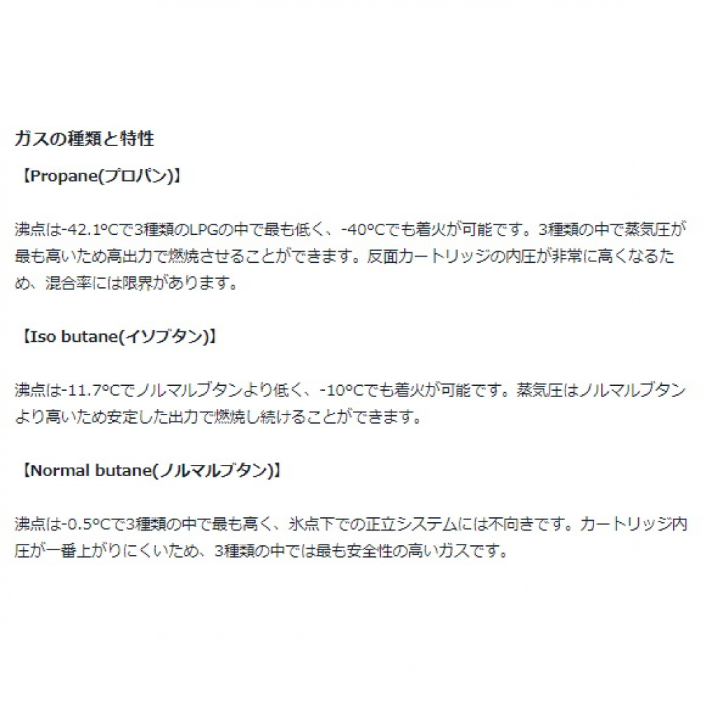 ■仕様:LPG(液化イソブタン・液化ブタン)
