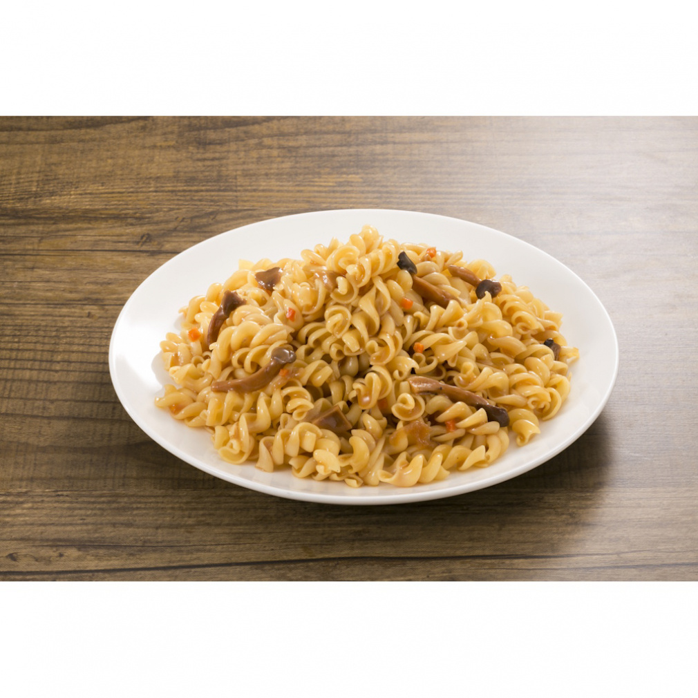 ◇デミグラス風味のソースに、きのこの食感がアクセントとなった洋風パスタです。5年の長期保存が可能でお湯で3分、水で20分で出来上がり。スプーン付き。