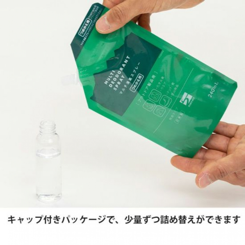 ◇天然由来成分で安全性が高く、様々なニオイに対する確かな消臭効果を実現した消臭スプレー「マルチ消臭スプレー」の詰め替えパックです。マルチ消臭スプレーのボトルに詰め替えてご利用ください。