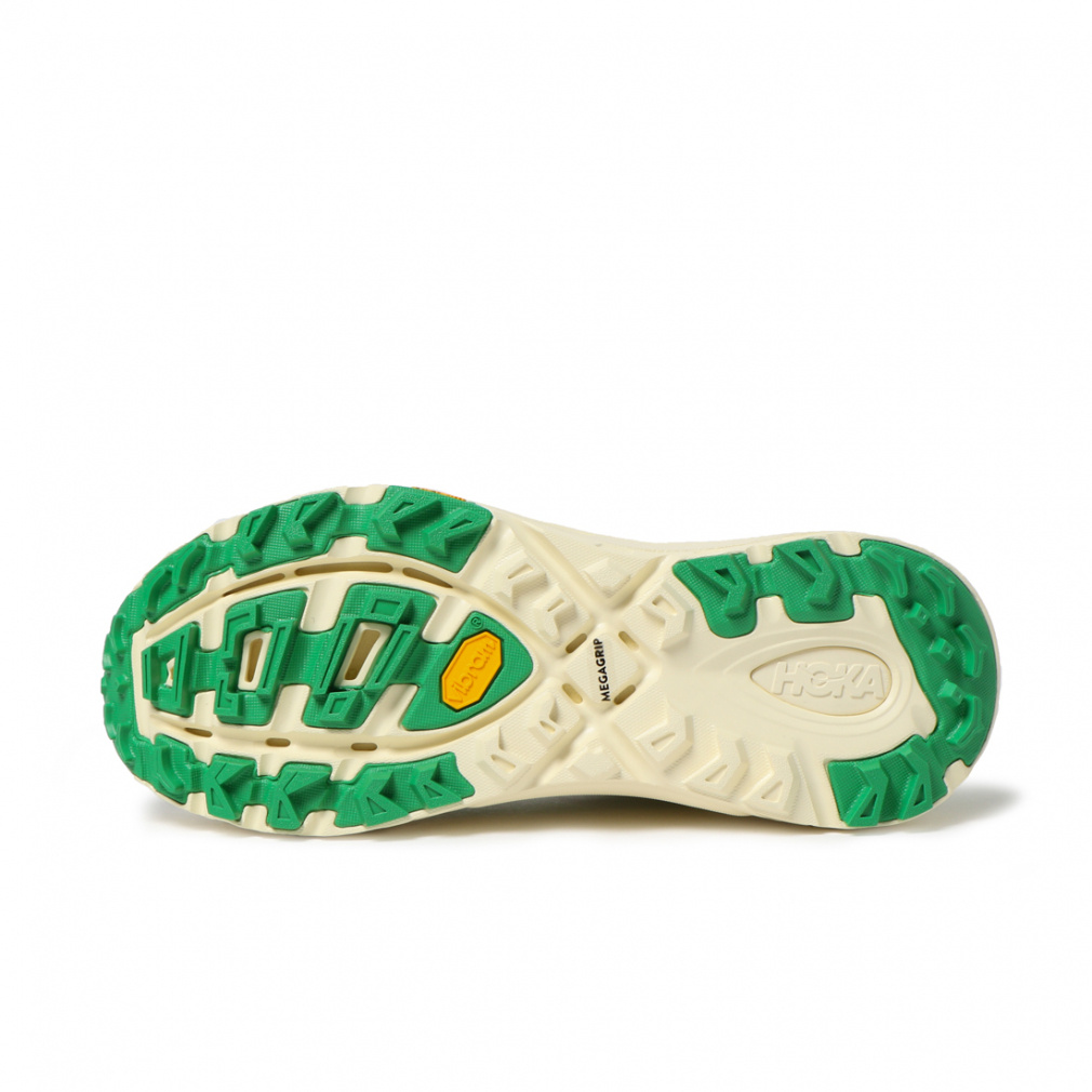 ◇HOKAならではのクッション性や踵をしっかりとホールドする、深めのアクティブフットフレーム、そしてメタロッカー構造がスムーズなランをサポートします。また、アウトソールには様々な地形に対応する5mmの深さのラグを採用することで、優れたグリップ力を発揮します。