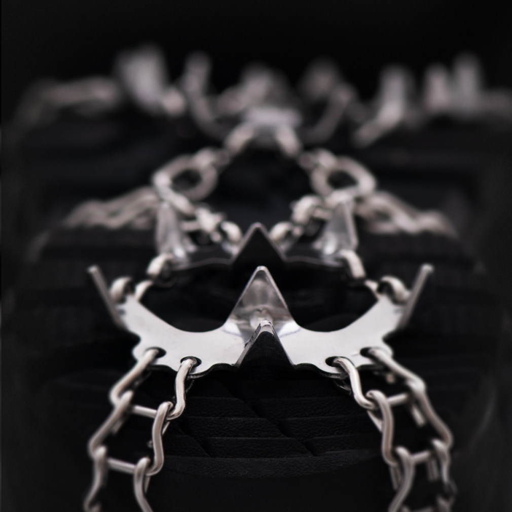 ◇強力な19本の爪で路面をしっかりとグリップするチェーンアイゼン。着脱しやすく、丈夫なつくりとなっています。