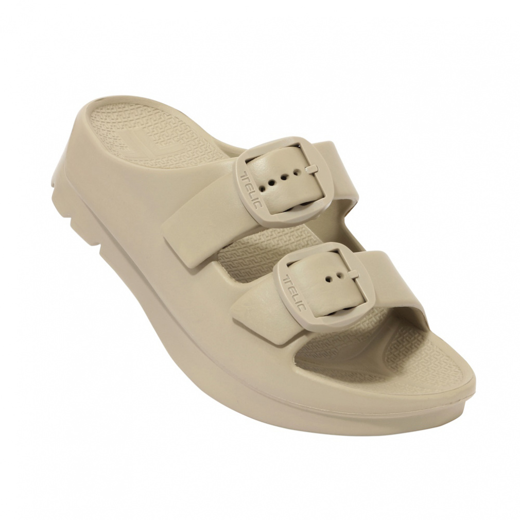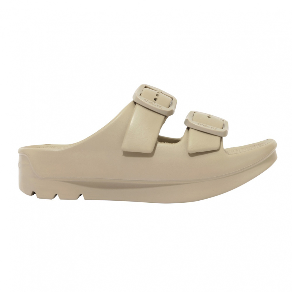 ◇大きなWバックルは、甲の高さに合わせフィット感を調整可能。リカバリーだけでなく、タウンユースとしても使える、トレンド感を備えたデザイン。