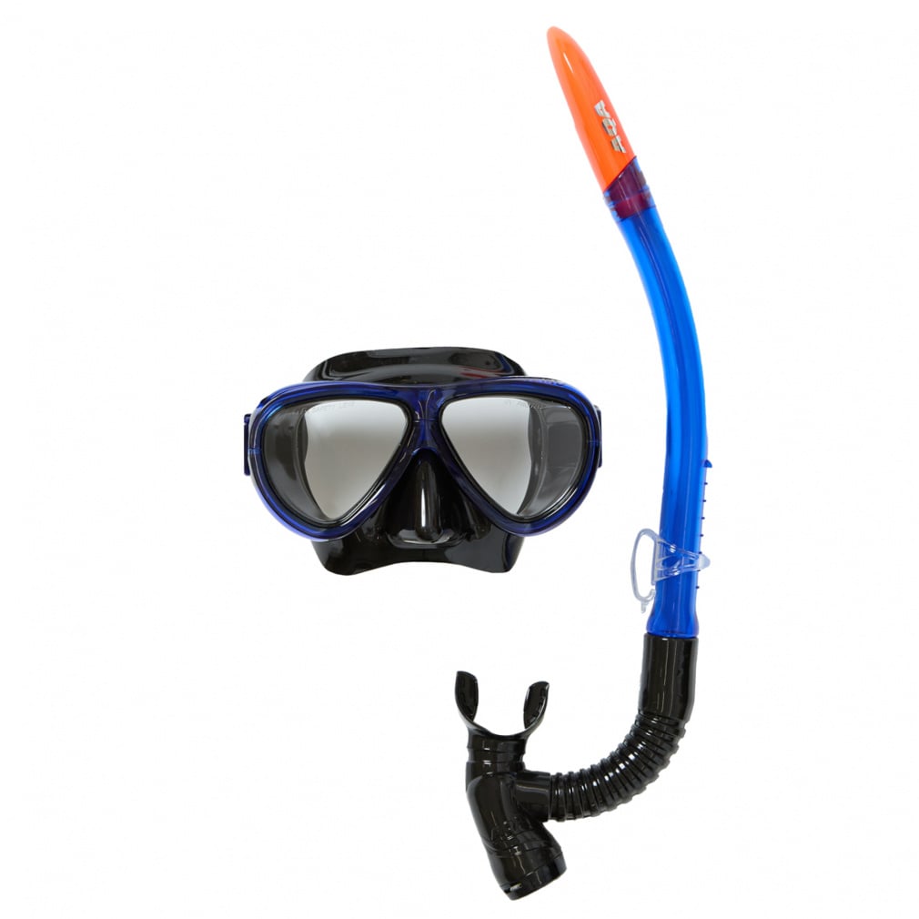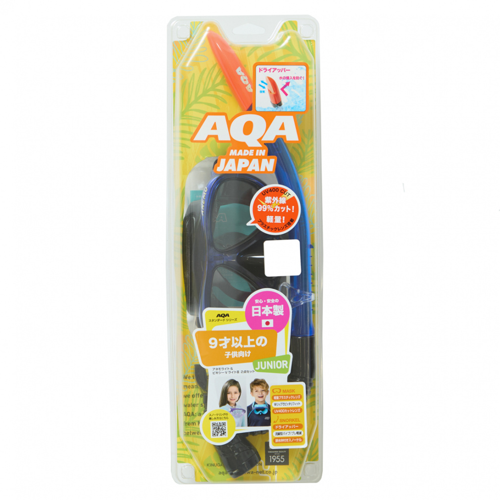 ◇2眼マスク&水の浸入を自動的に防ぐドライアッパー付きスノーケルの9歳以上向けセット。