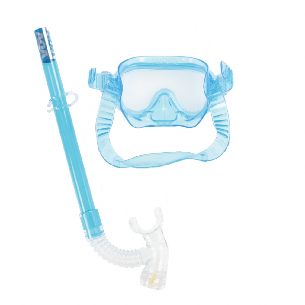 ◇プラスチックレンズを採用し軽量化したフレームレスのスタンダードなマスクとスノーケルの子供用セット。