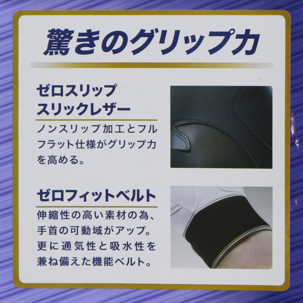◇驚きのグリップ力を発揮する、ゼロスリップスリックレザーを採用。