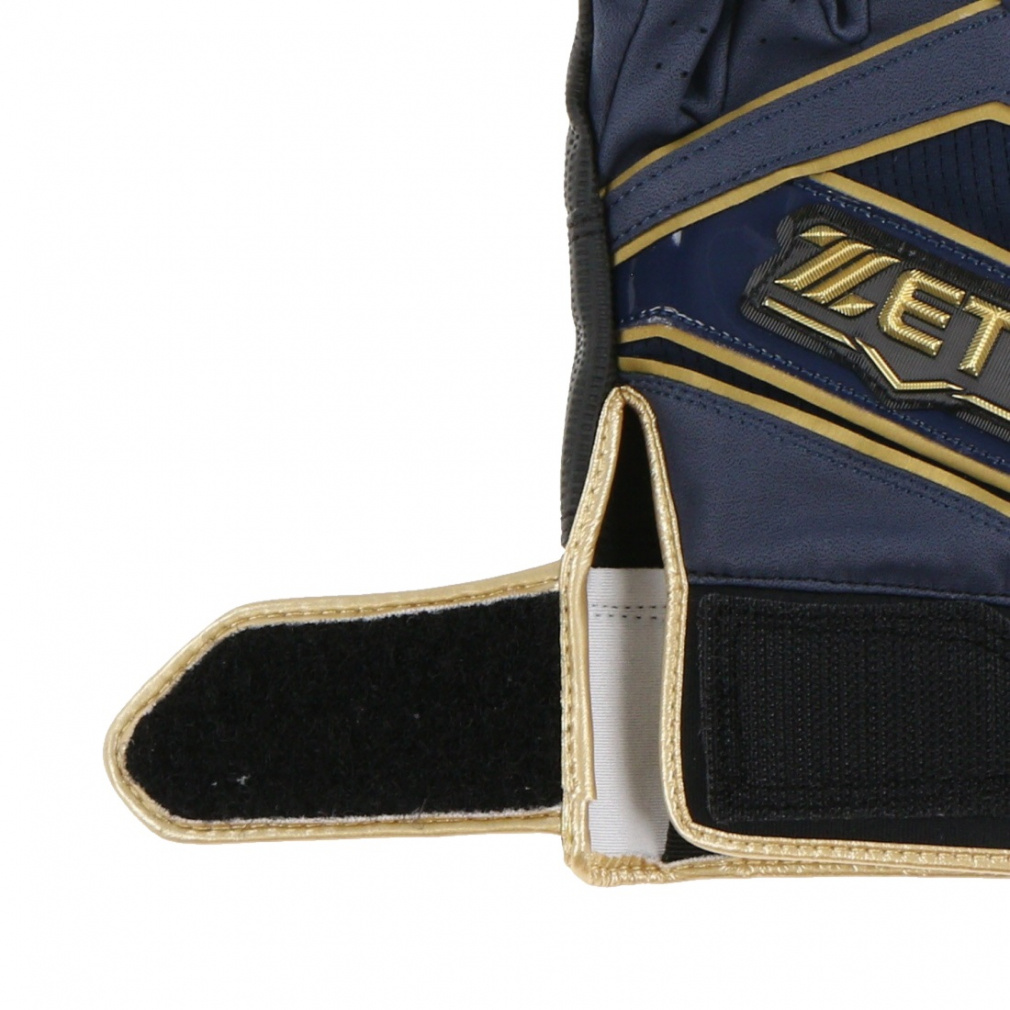 ◇中指~小指を3Dパターンにすることで、最小限の力でバットを握り込める。甲部メッシュ仕様、ゼロスリップエンボスレザー、ゼロフィットベルト(手首の可動域がアップ)。生地二重(当て革)補強(親指、掌の2個所)