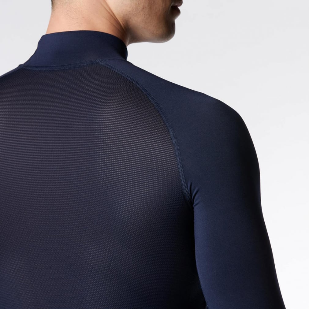 ◇学生野球での使用にも対応するロゴ位置。右裾に背番号、名前等を記入できるジョックタグあり。競技規定に接触しないよう、ユニホームから見えない位置にロゴを配置ベースレイヤーの中でも野球に特化した1着。