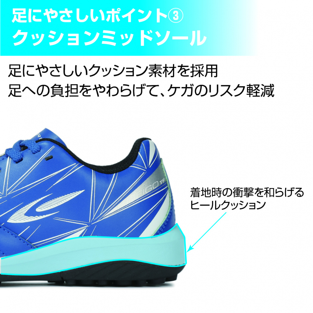 ◇はじめての一足におススメ。子供の足にやさしいサッカーシューズ・足にやさしいクッションEVAはプレー時の衝撃をやわらげ、負担を軽減します。