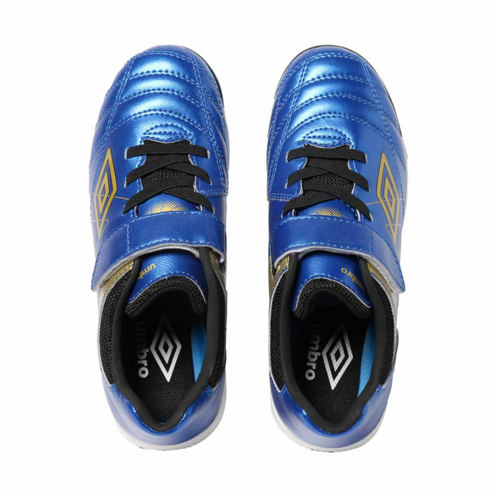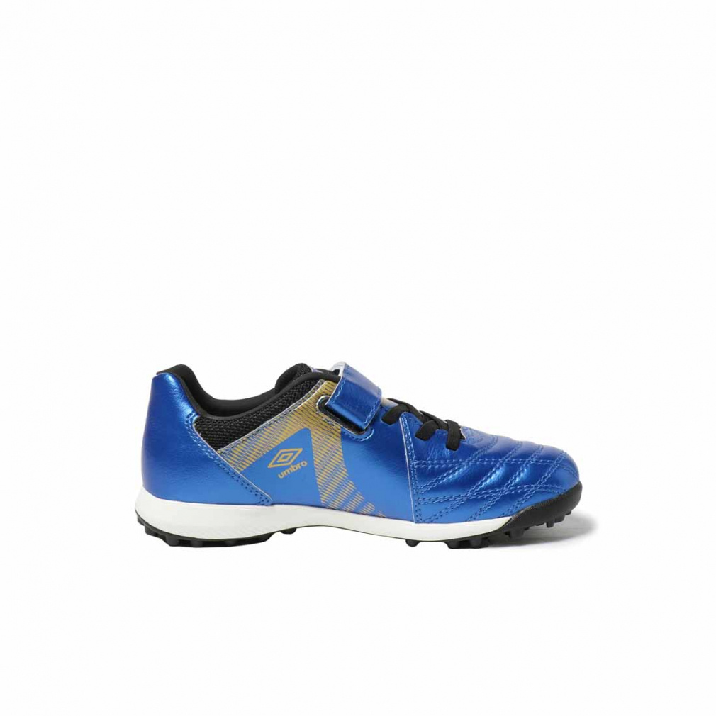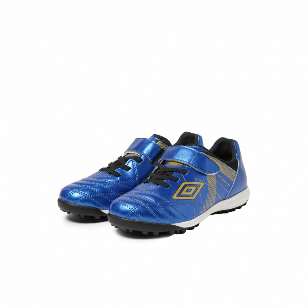◇『ACCERATOR』シリーズのスタータープレーヤー向けシューズ。日本国内企画のワイドラスト。アンブロが持つフィッテイングサポートファンクションのAフレームをグラッフィクデザインで表現。インステップキック時のインパクトを意識しやすいプリント加工を採用。104本のラバースタッドでグリップし、屈曲性を考慮したアウトソールを採用。Aフレームプリントデザインを採用。耐久性に考慮した着脱が容易な1本ベルト仕様。アッパー材全体に耐久性のある合成皮革を採用。クッション性と反発性を考慮したインジェクションEVAをミッドソールに採用。取り外し可能なEVAカップインソール。約155g(19.0cmで計測)