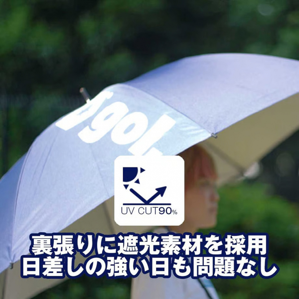 ◇雨の日での使用はもちろん裏張りに遮光素材を使用し日差しの強い日のスポーツ観戦でも使える晴雨兼用のフルタイムUVアンブレラ。