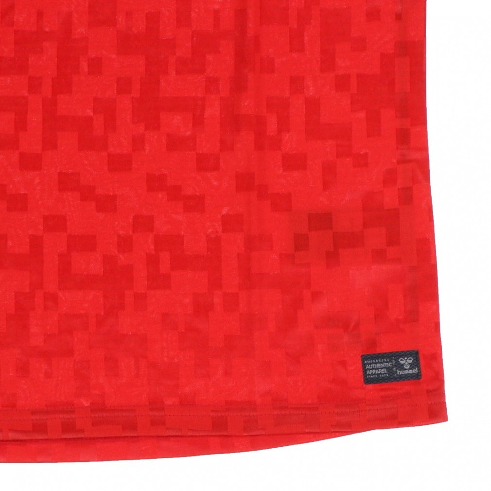 ◇新ユニフォームは、DBU(デンマークサッカー協会)の活気に満ちた文化に敬意を表し、DBUに加盟する全1535サッカークラブの名前がジャージの内側にプリント。DBUのエンブレムがジャージの内側に誇らしげに配置されています。内側にクラブ名がプリントされているほか、ジャージにはさまざまな赤の色合いのユニークなスクエアデザインが特徴。このデザインは、デンマークのフットボールコミュニティを形成するために集まっている多くのクラブの多様性を視覚的に表現しています。全体にグラフィックパターンをプリントし、リブ編みの襟を採用、左胸にDBUロゴを、右胸にヒュンメルのロゴを、肩にはシェブロンをデザイン。衿裏に「デンマークへ」とデンマークサッカー協会(DBU)のミッション「EN DEL AF NOGEST STORRE」を衿裏にプリント。これは、「私たちは、より大きなものの一部である」という意味で、サッカーが健康や友情に作用し、社会の中で責任があることに対する宣言。