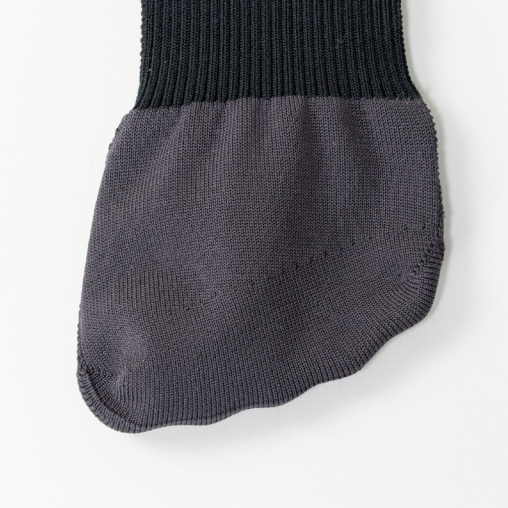 ◇土踏まずの編み組織を変えることで、足に吸い付く履き心地とサポート感を創出。外甲部分のくびれに沿わせるように、中足部をリブ編みにすることでソックスのダブつきが起こらないないように設計。