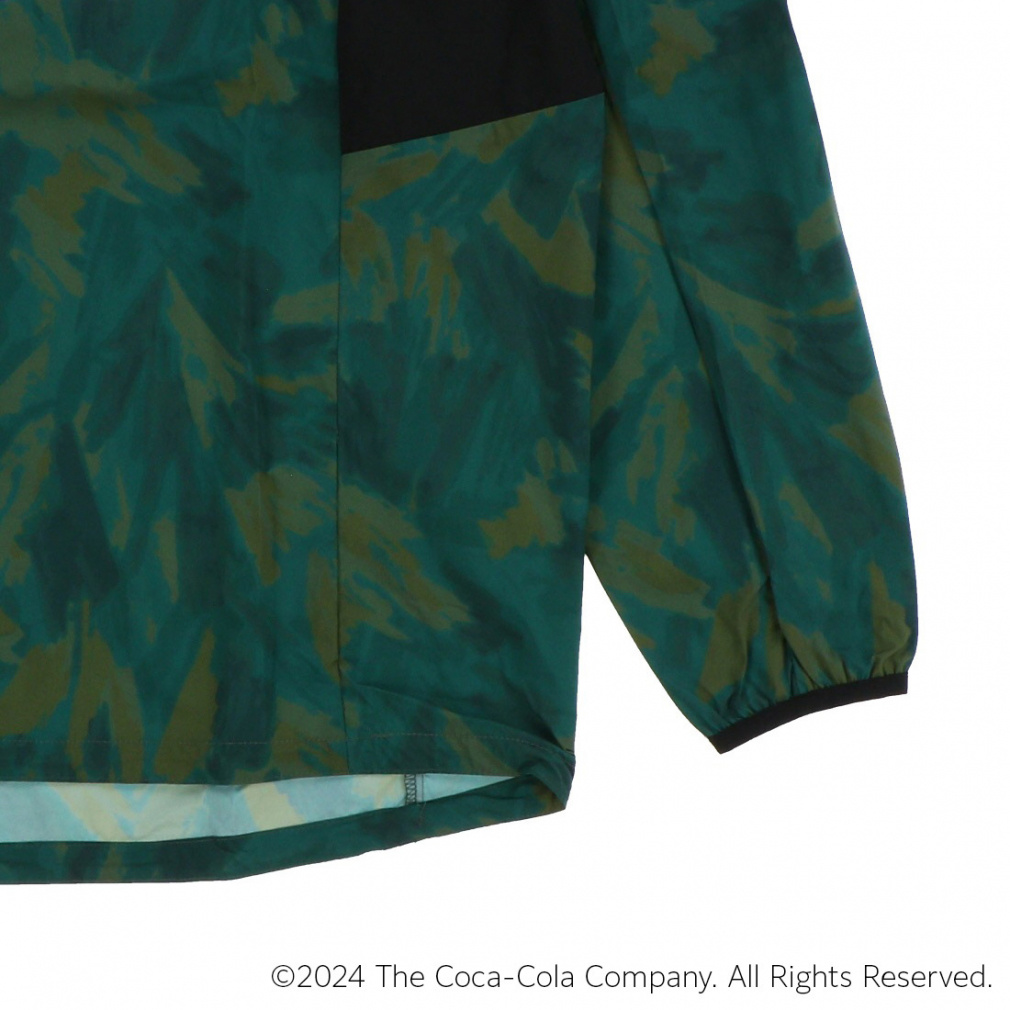 ◇コカ・コーラのグラフィックとリーフの総柄プリントデザインのピステジャケットです。ウォームアップや寒い時期のトレーニングにも動きやすく最適な1枚です。