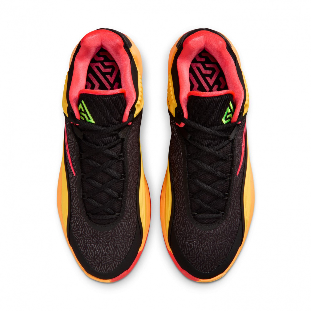 コートに足を踏み入れたヤニスは、まるで別人。この特別なデザインは、ヤニスがプレー中に発する気迫と、周りのプレーヤーに与えるエネルギーをイメージ。ヤニスはそうして仲間を焚きつけ、全力を引き出し、プレーをレベルアップさせます。